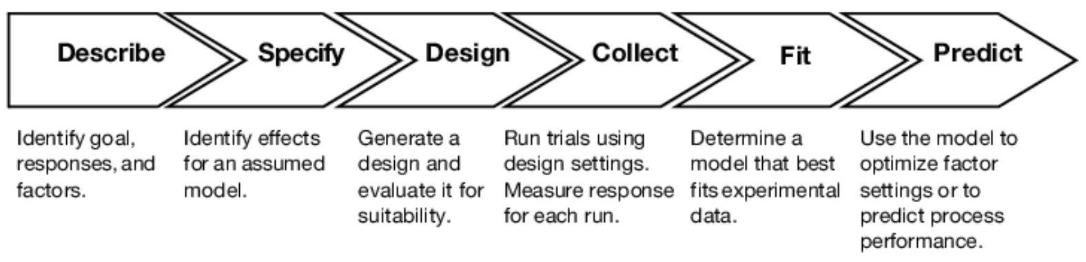 In this discussion, consider the Design of Experiment (DoE) process that is widely used including in the health care field. Experimental design is widely discussed at many levels and perspectives. [Conf01], [Gold02] Design of Experiment as a process is widely discussed as well: